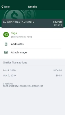 Keep your transactions organized by allowing you to add tags, notes and photos of receipts and checks.