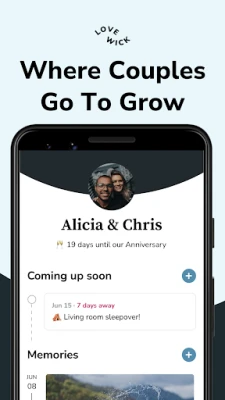 Make your relationship last, and have fun doing it! Lovewick’s free relationship tracker app has everything you and your partner need to grow & stay in love: 1000+ fun couples questions, 100s of unique date ideas, research-based romantic advice & relationship reminders like anniversary and date night countdowns!
