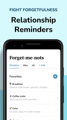 - Be thoughtful more easily with notes on what your partner likes and doesn’t like and anniversary and relationship countdowns. Write down anniversaries, birthdays, and preferences like coffee orders, favorite flowers, and clothing sizes, all in one place.