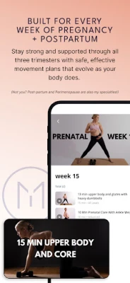 • Training tracks tailored for Pregnancy, Postpartum, and Perimenopause.