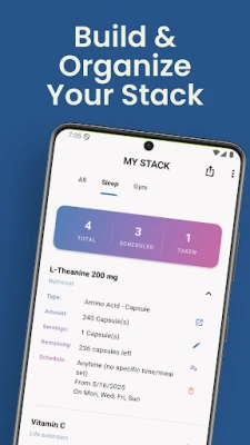 • Share your supplement stack with friends and community