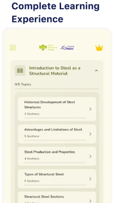 • Complete Offline Access: Study steel design concepts anytime without an internet connection.